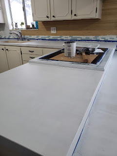 Once you get the epoxy into curing, is where you start to see, understand and realize this is a gap solution. Our counters aren't perfectly level and it took us a week or so to find a few places that weren't covered or even. But 95% and better of all the surfaces look really good in pix and to the eye from a distance. Now we are untrained and learn as you go DIY-er's in this space - kind of like my self-coached endurance athlete/participant approach. The pro-tip we skipped and ignored kind of revealed itself over time. If you come to see the counter, you can see the smoothness of the overlay, but you can also see and feel some small bumps here and there. the hand torch is to help heat out and pop air bubbles. We were so excited we didn't think there were any, and well, it still turned out awesome, but it's not PERFECT.